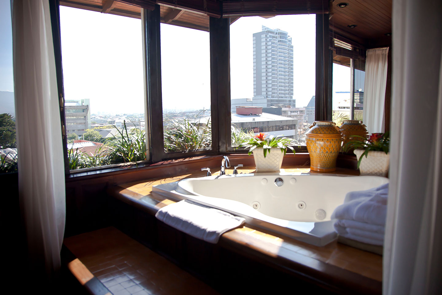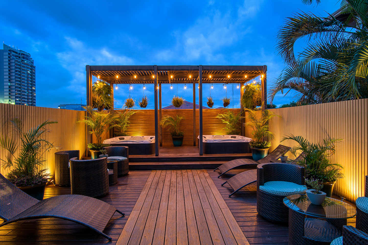 Unwind in our exclusive rooftop garden terrace, featuring jacuzzis and lush grass beds—an idyllic space to relax after a day of exploration. A serene retreat to disconnect and take in the San José skyline. Open daily from 9:00 AM to 10:00 PM.