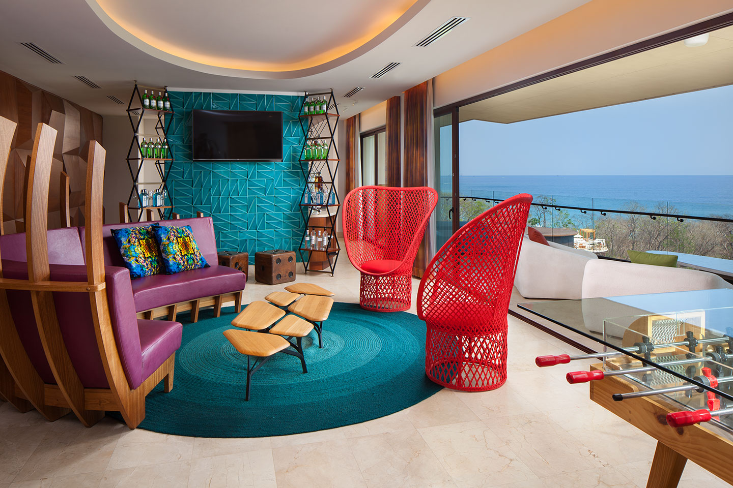 Designed to immerse guests in natural beauty, these rooms feature floor-to-ceiling windows with garden or partial ocean views and bold, colorful décor inspired by Costa Rica’s vibrant energy.